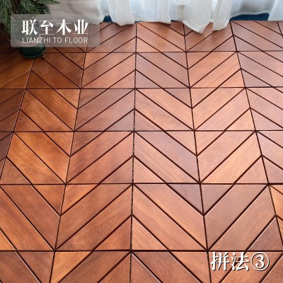 甘巴豆鱼骨斜拼实木地板户外露台阳台花园室外拼装接地面铺设花拼