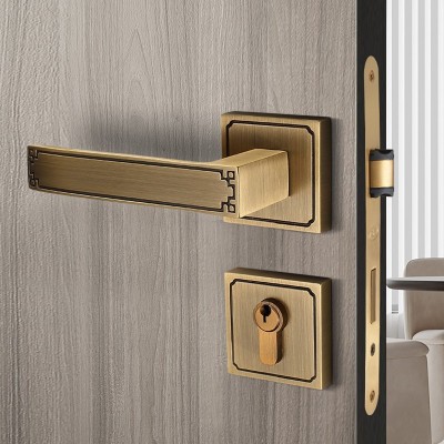 新中式房门锁纯铜静音室内卧室门锁家用木门通用型锁具全铜分体锁