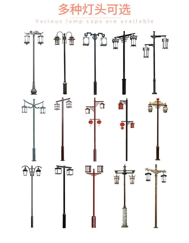 太阳能仿古庭院灯中式户外3米复古公园别墅双头景观灯笼路灯定