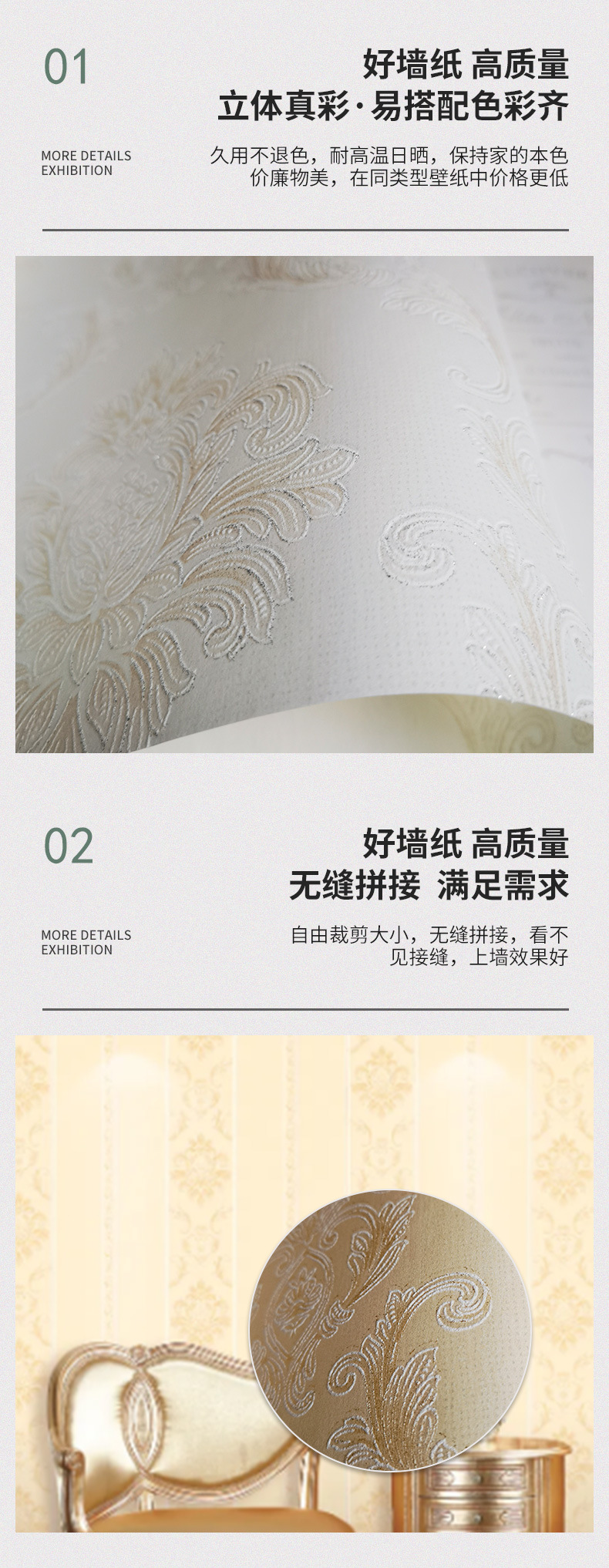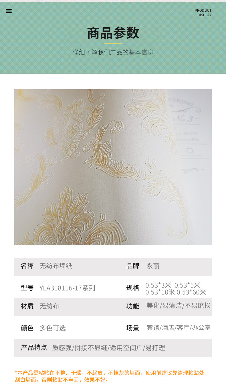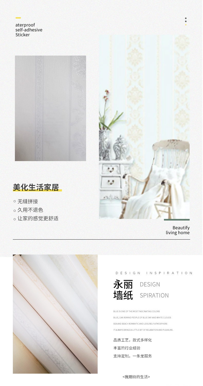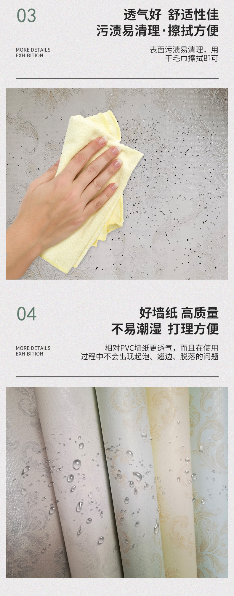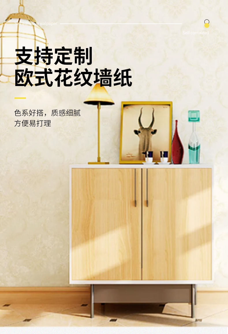 非自粘的无纺墙纸不是那种背面带胶、气味很大的自粘墙纸哦;我们采用的是无纺底纸,透气性好,使用年限长久!