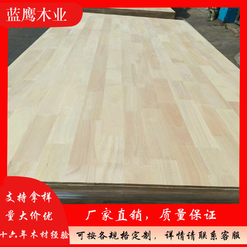 橡胶木指接板实木集成板现货定 制加工衣柜板办公桌可上漆