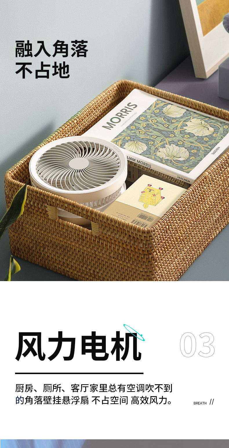 edon爱登USB充电小风扇 桌面台扇E808便携折叠挂壁落地空气循环扇