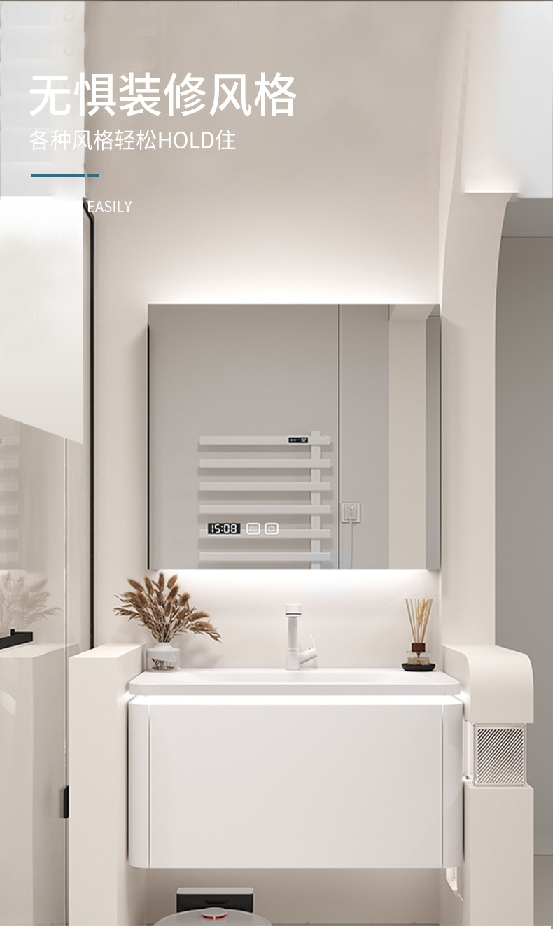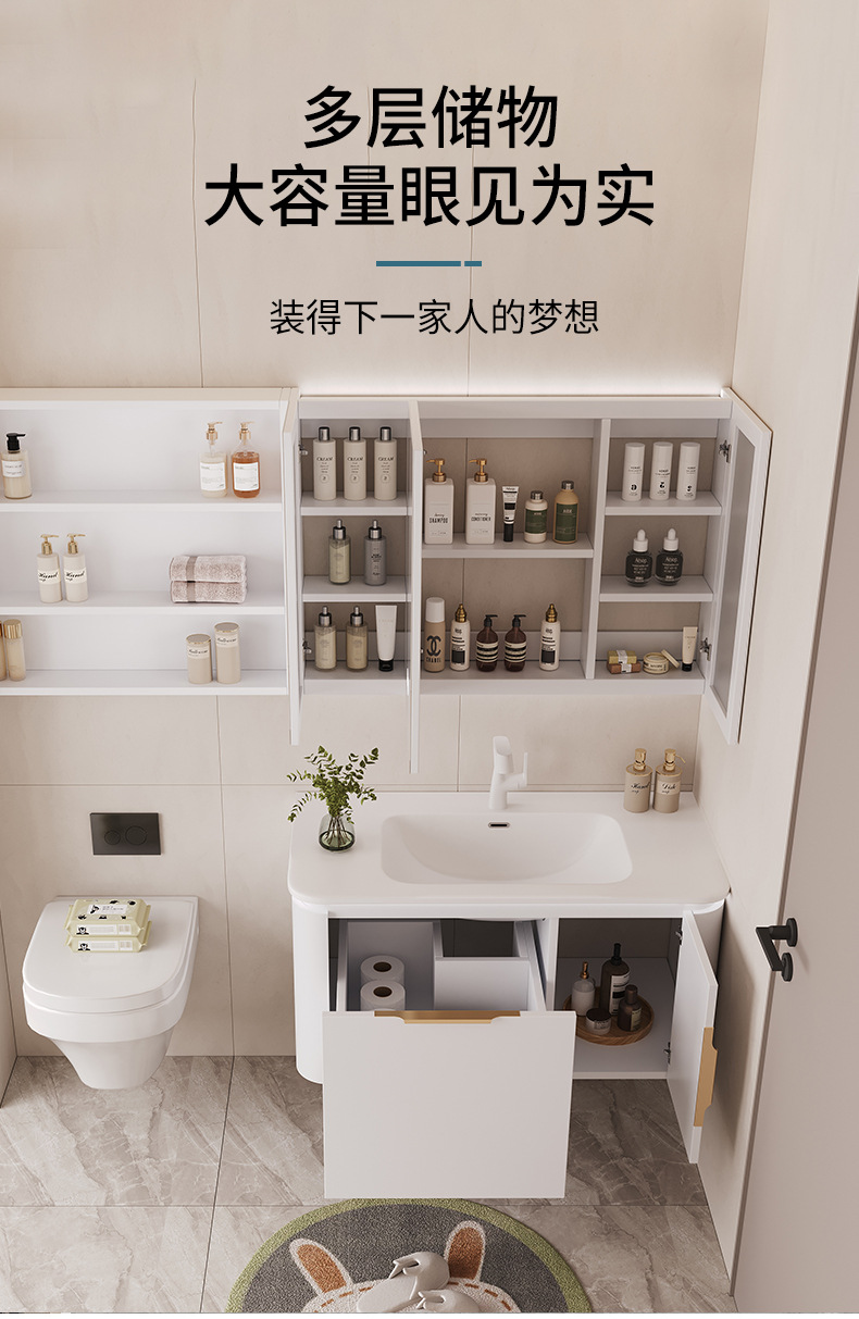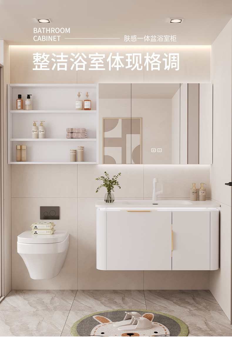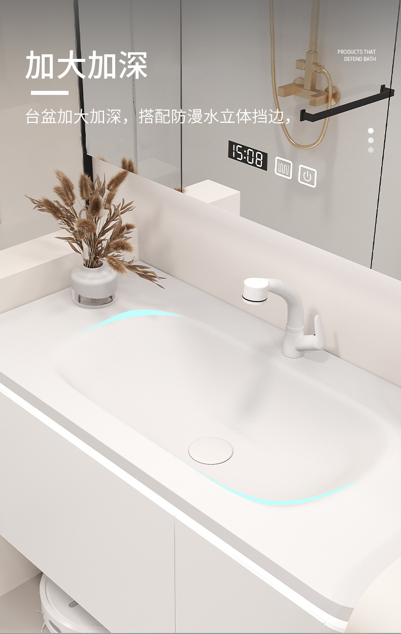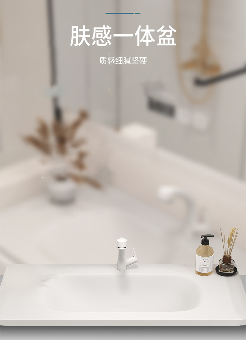 小红书岩板无缝洗漱盆可丽耐一体盆浴室柜洗手池洗漱台盆橡木定制