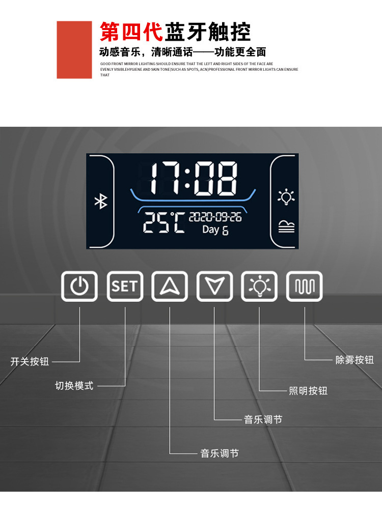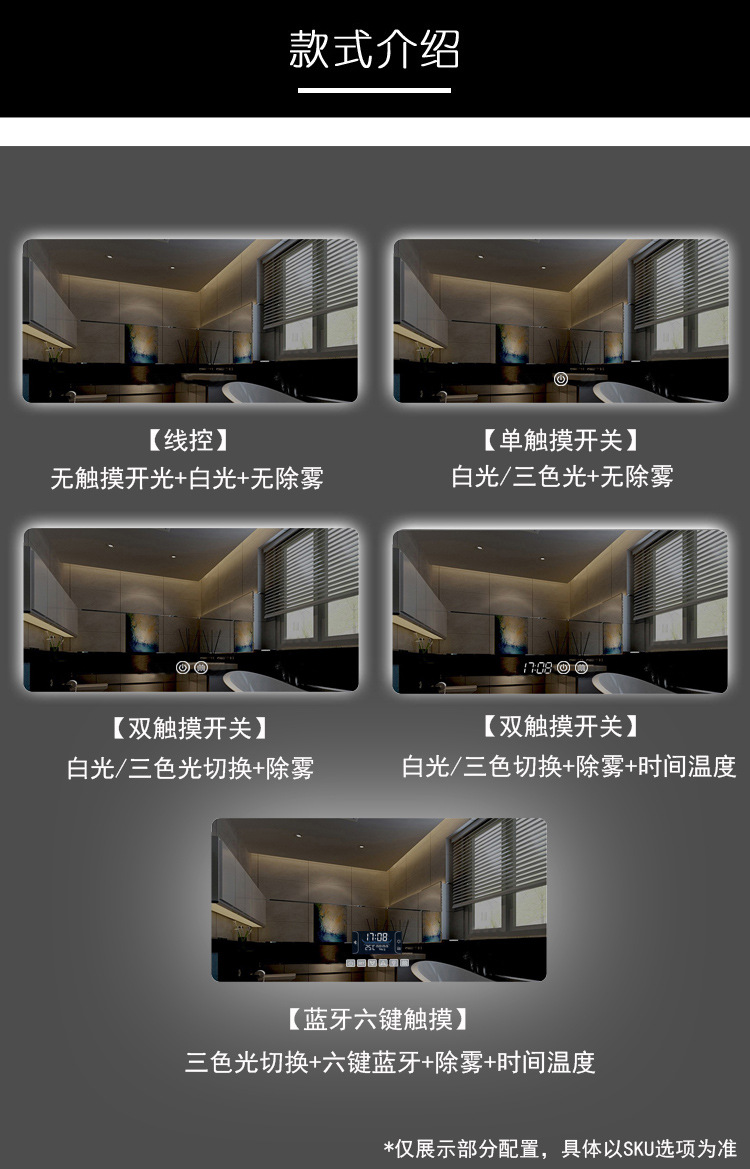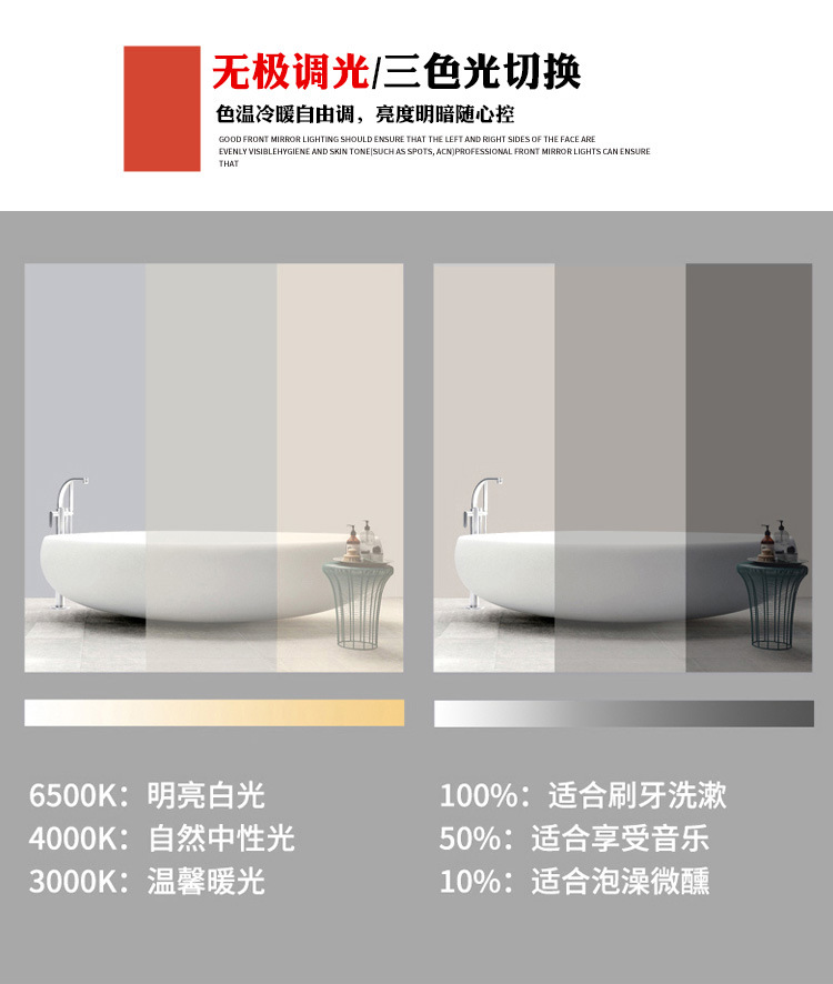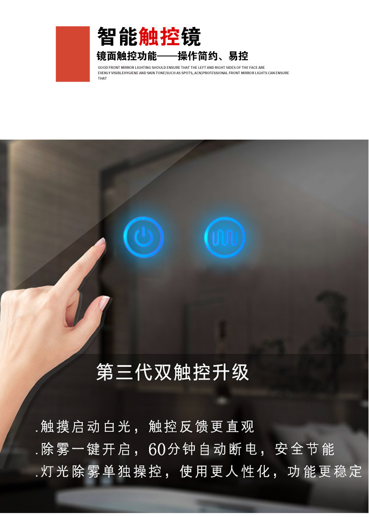 洗手间led发光镜子壁挂智能浴室镜酒店卫生间防雾镜子带灯蓝牙