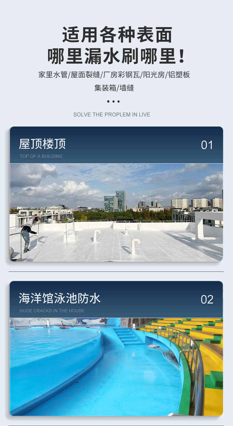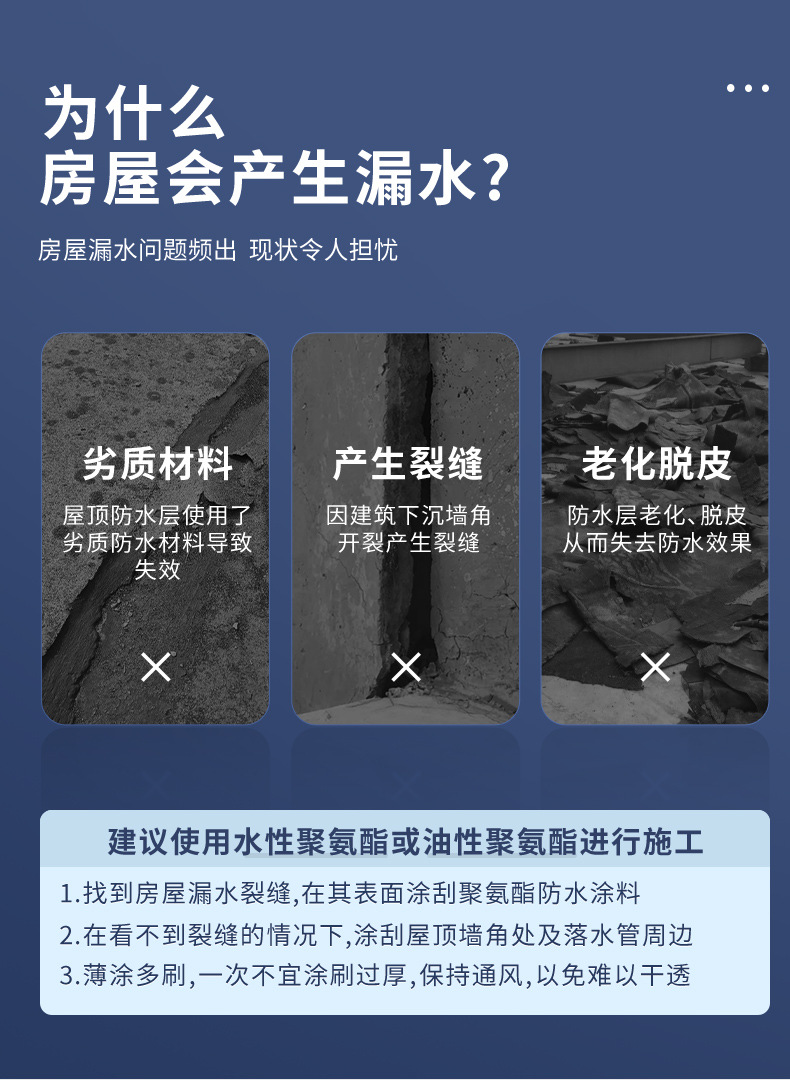 聚氨酯防水涂料房屋顶大面积液体卷材窗台裂缝用堵漏王防水胶材料