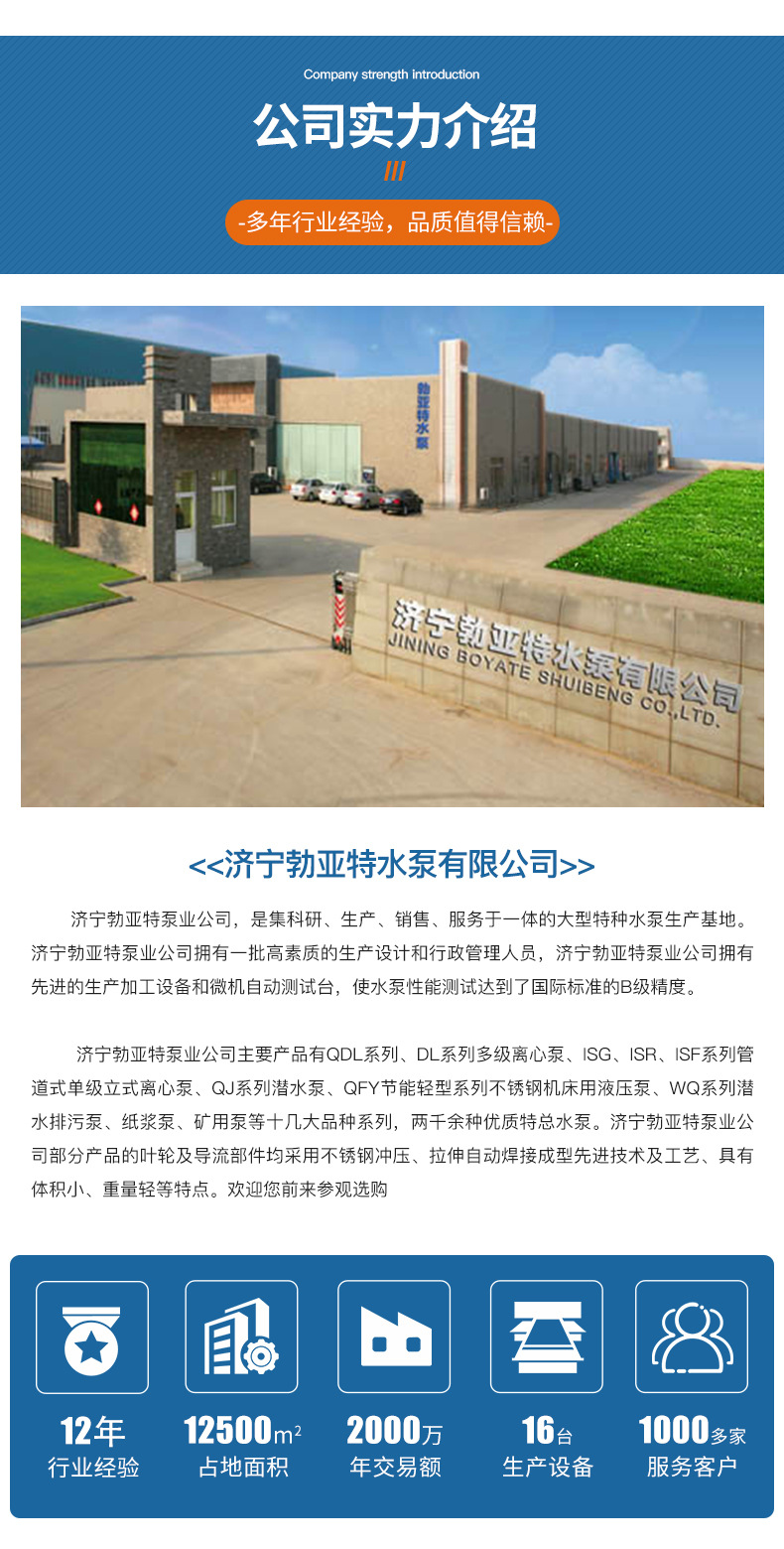 | 主营产品或服务 | 主营: 离心泵 供水设备 污水处理设备 | ||