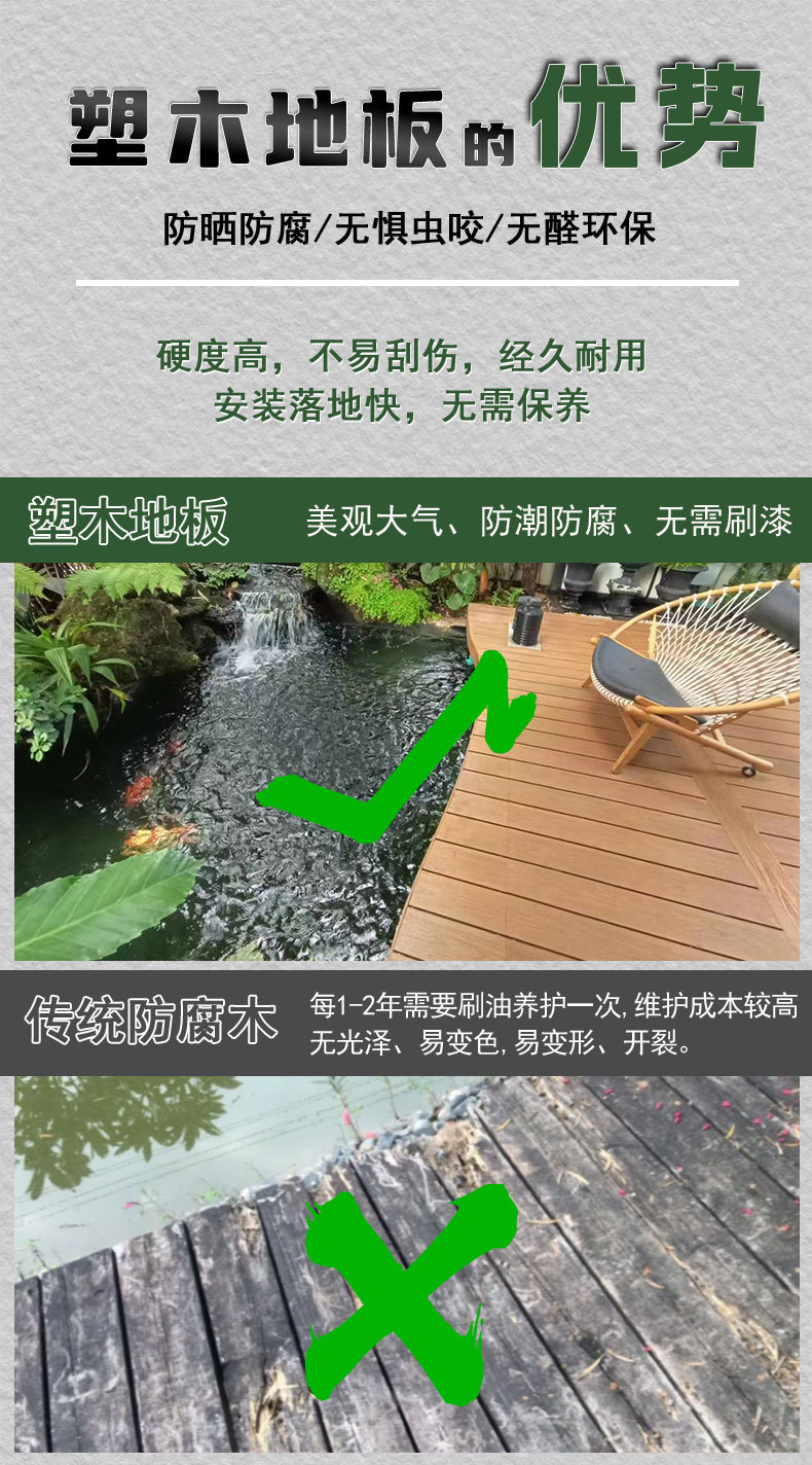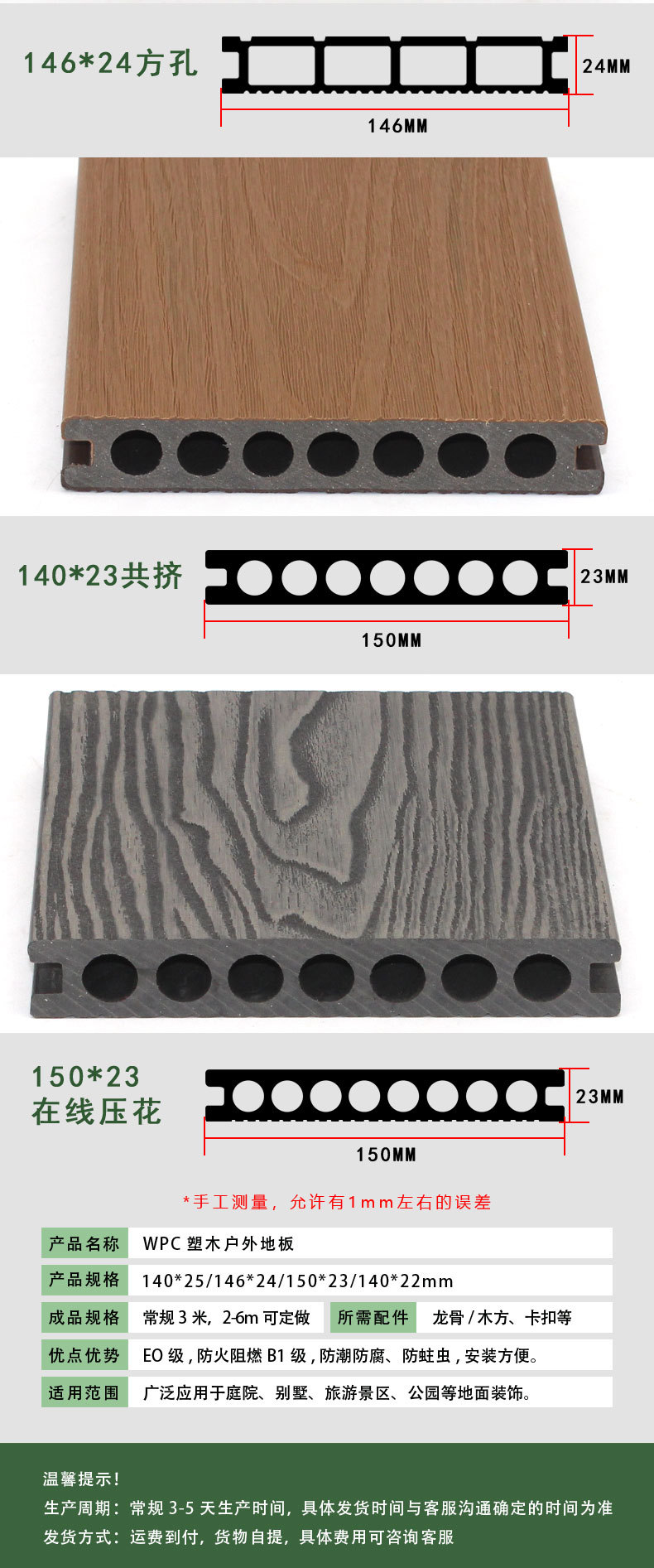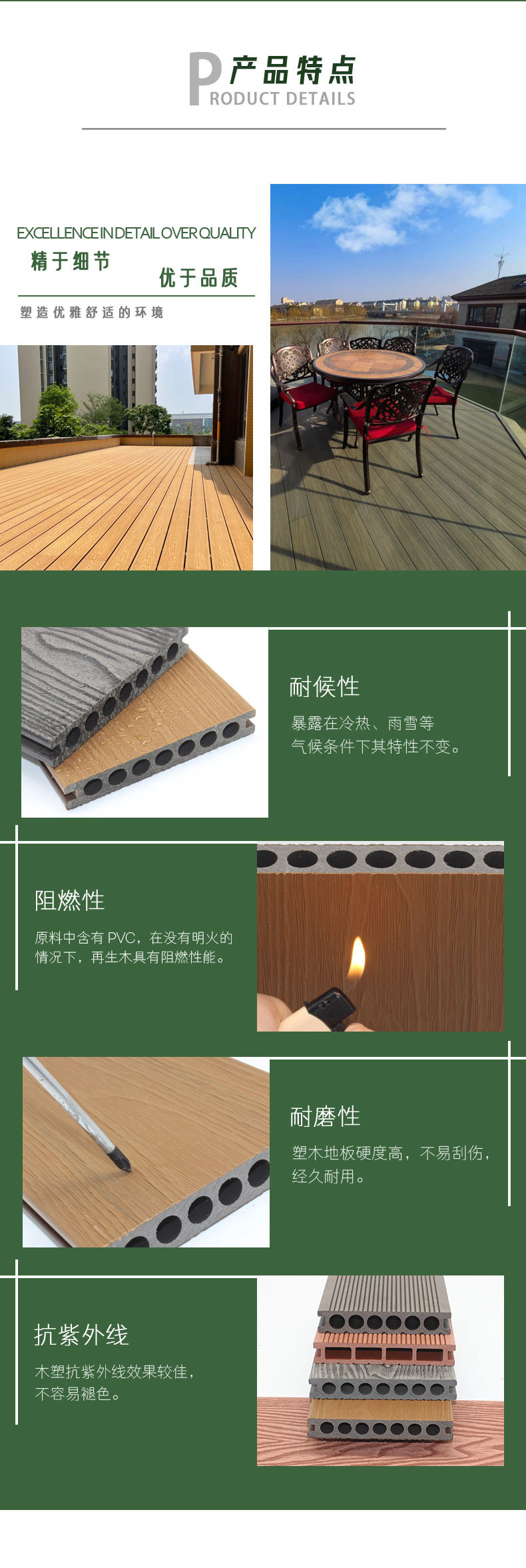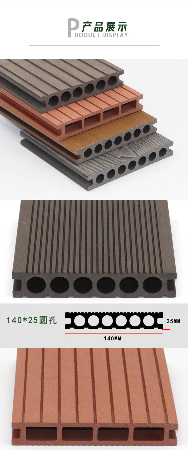 阳台防水塑料PE室外地板WPC木塑地板圆孔户外露台塑木地板工厂
