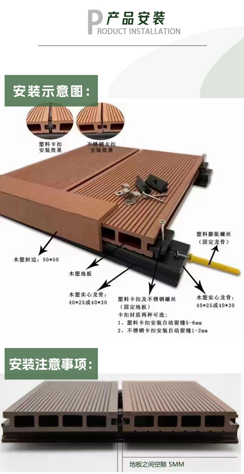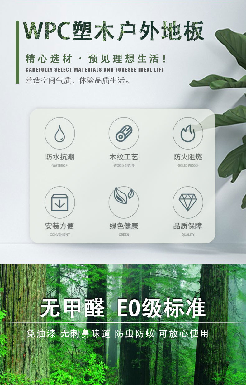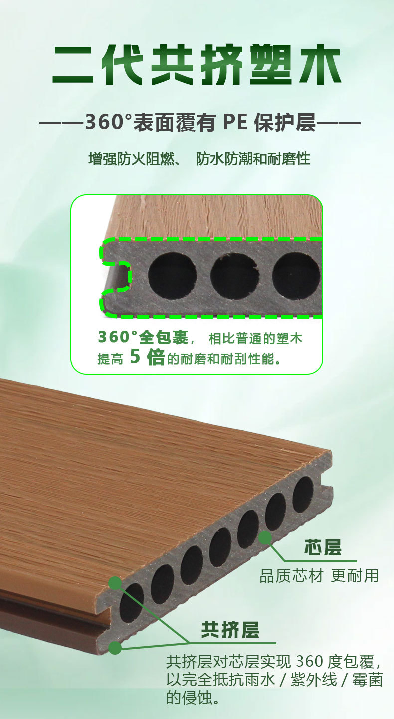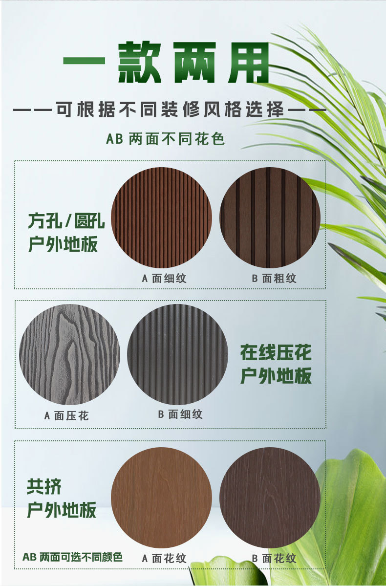 阳台防水塑料PE室外地板WPC木塑地板圆孔户外露台塑木地板工厂