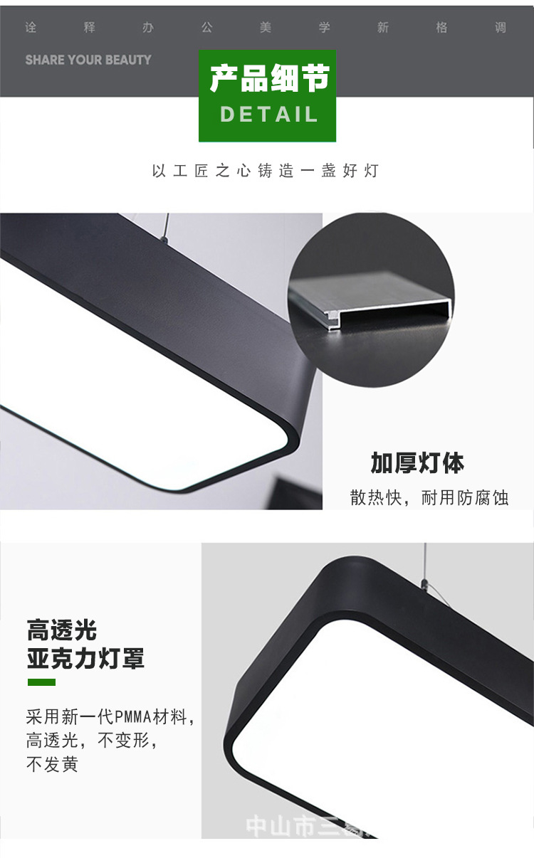 LED长条灯办公室吊灯超亮现代简约长方形店铺商用方通条形吊线灯