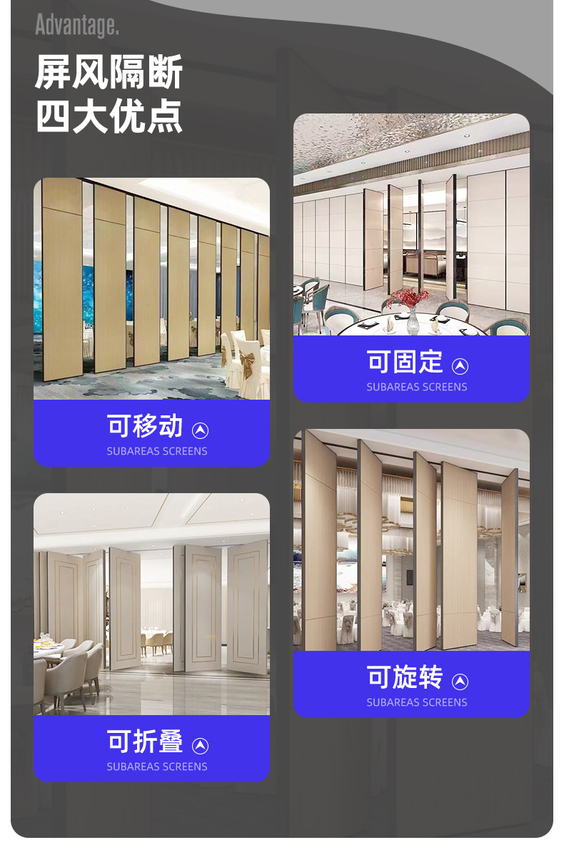 酒店活动隔断墙饭店包厢宴会厅隔音墙板移动屏风可折叠旋转推拉门