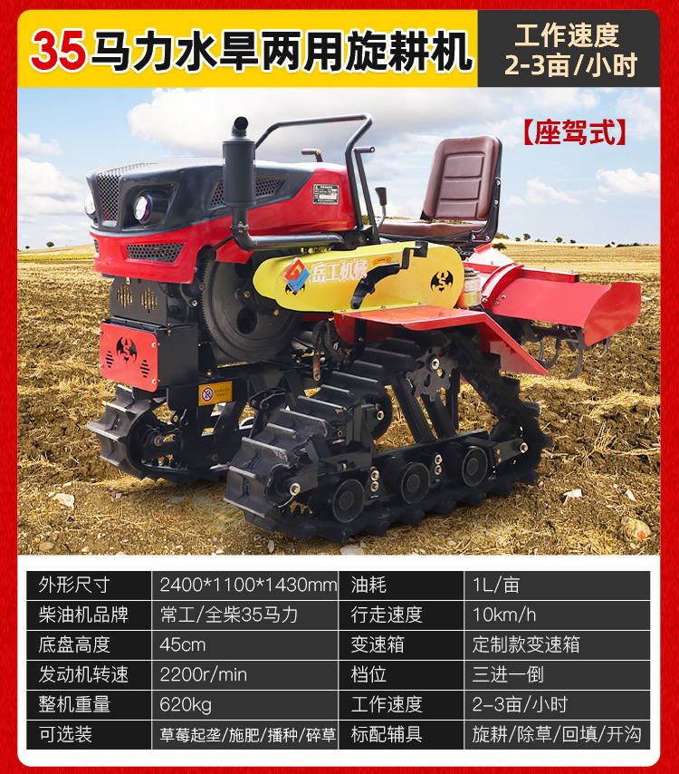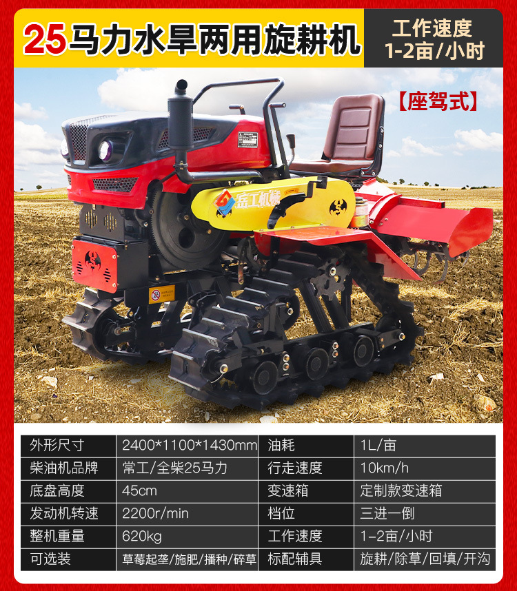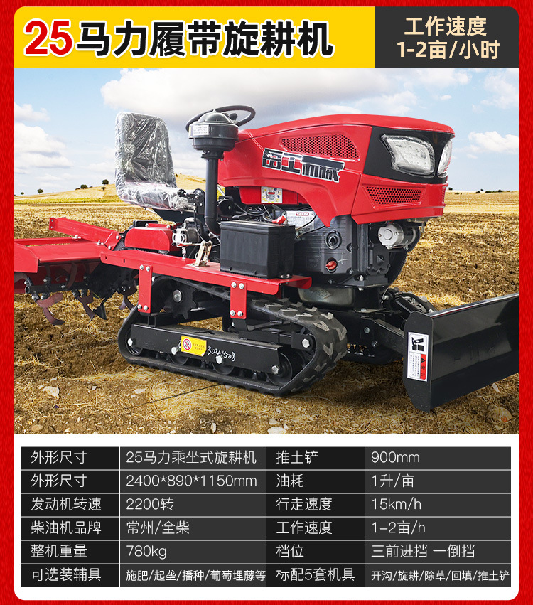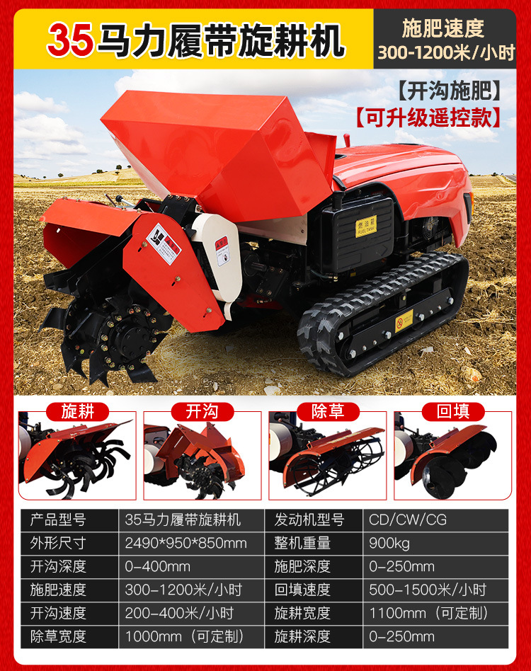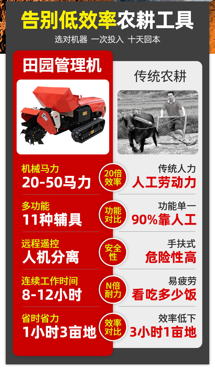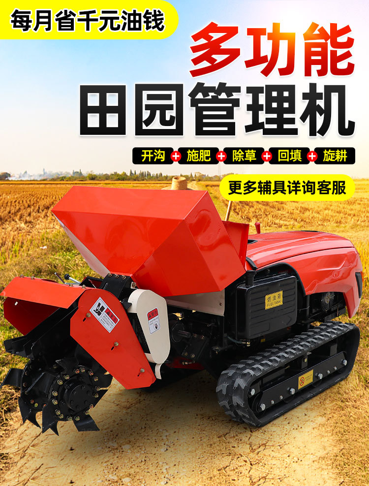 田园管理机开沟施肥除草耕地旋耕机田园果园开沟柴油履带式微耕机