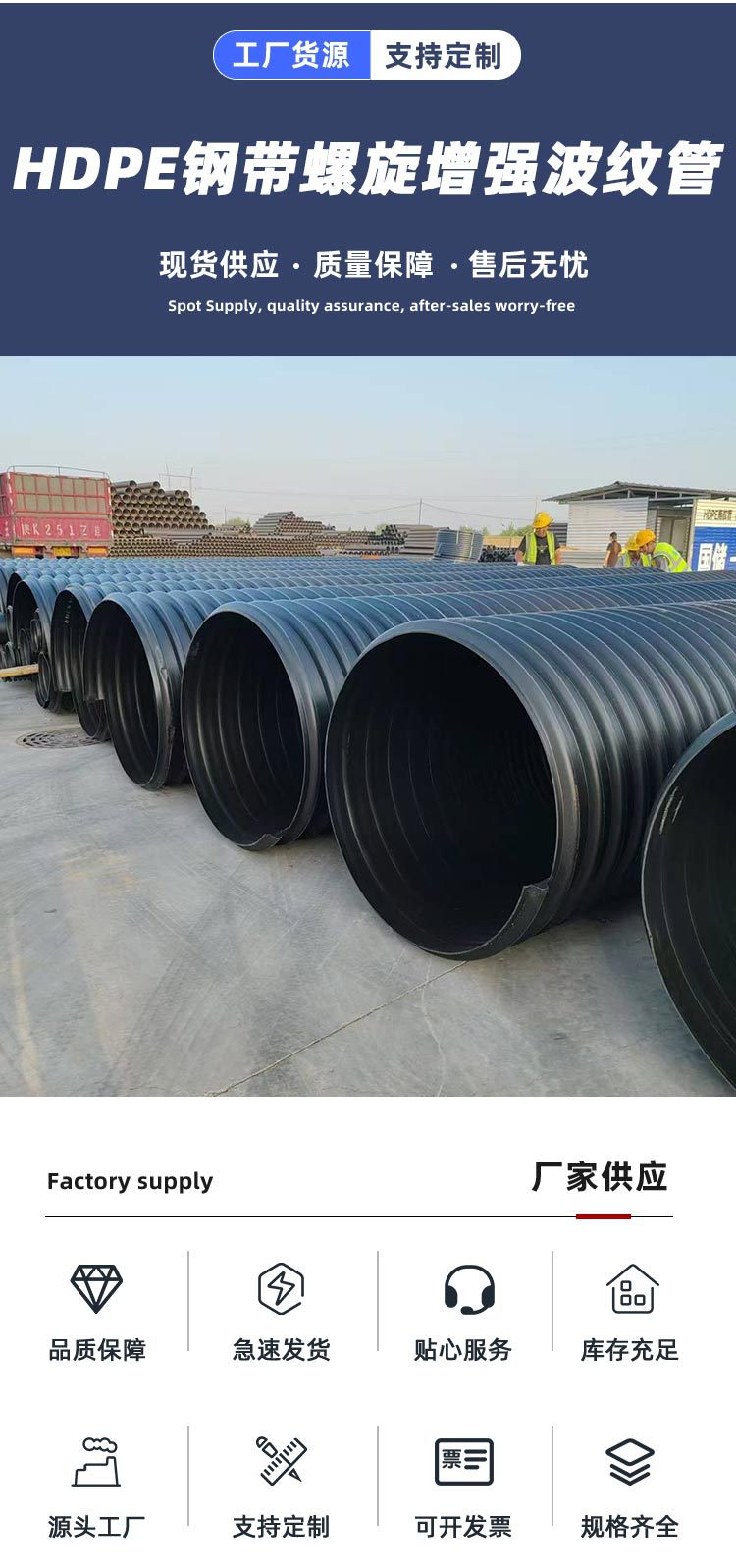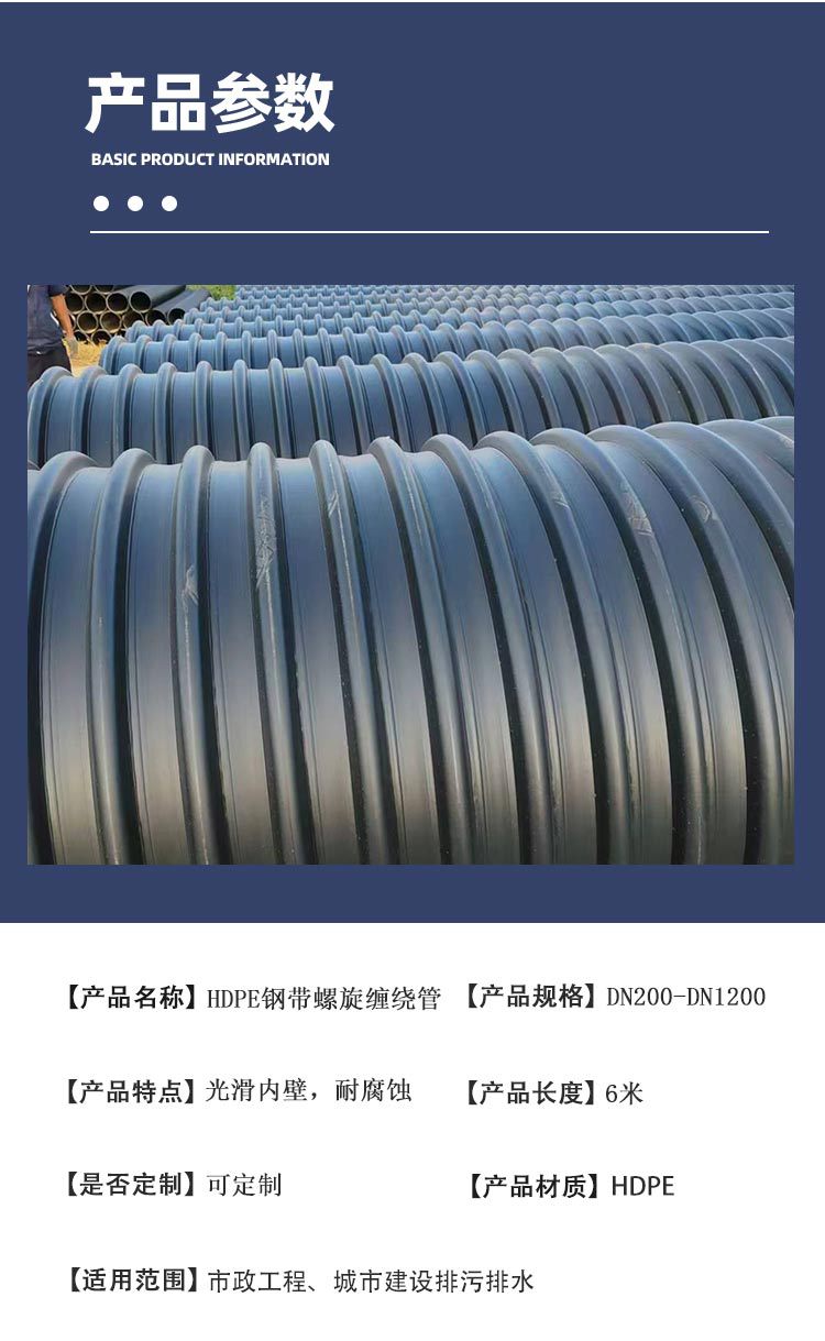 陕西HDPE双壁波纹管厂家 钢带增强聚乙烯螺旋管 耐磨污 水排水管