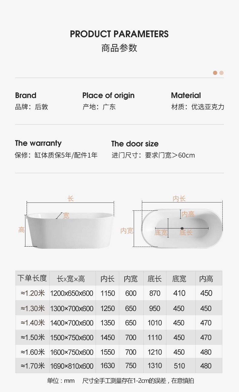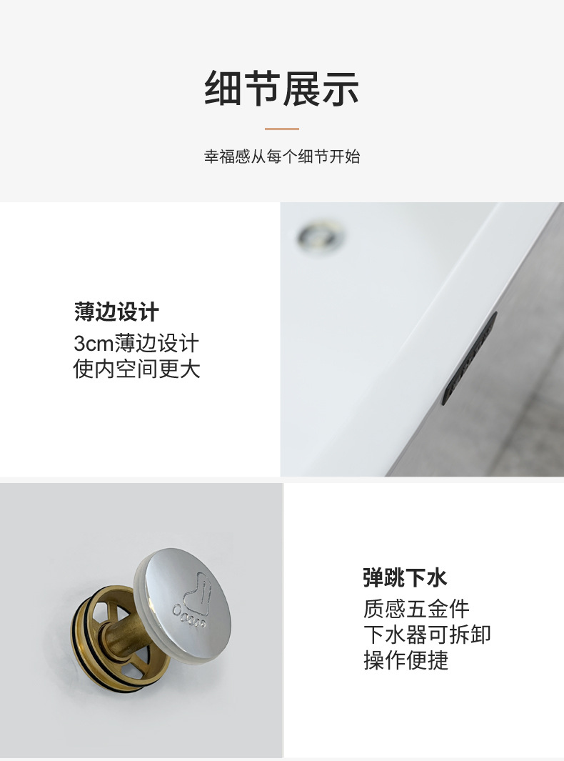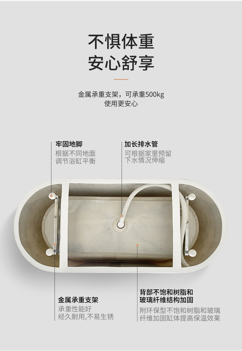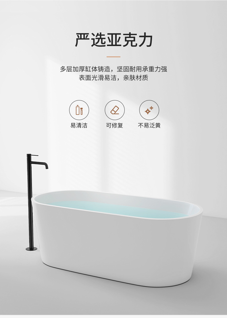 批发亚克力独立式椭圆型浴缸家用酒店民宿美容院工程网红薄边浴缸