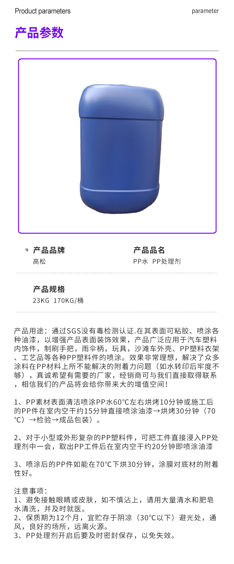 PP料印刷喷涂专用PP表面处理水PP处理剂增强附着力PP水厂家供应