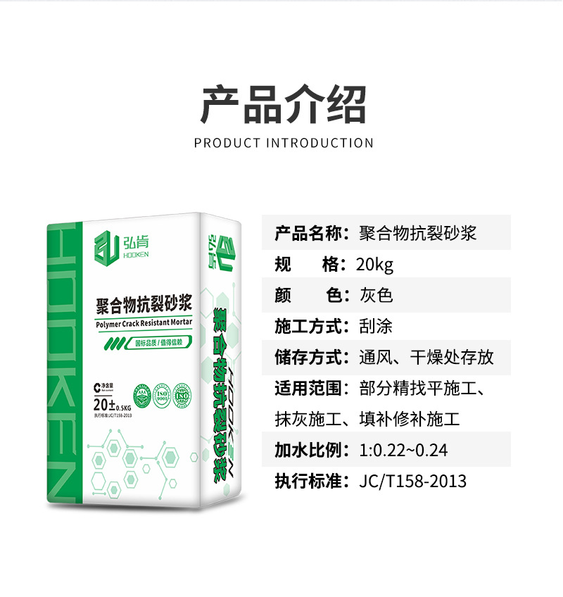 厂家批发弘肯墙面找平砂浆聚合物抗裂砂浆新型抗裂防水砂浆20kg