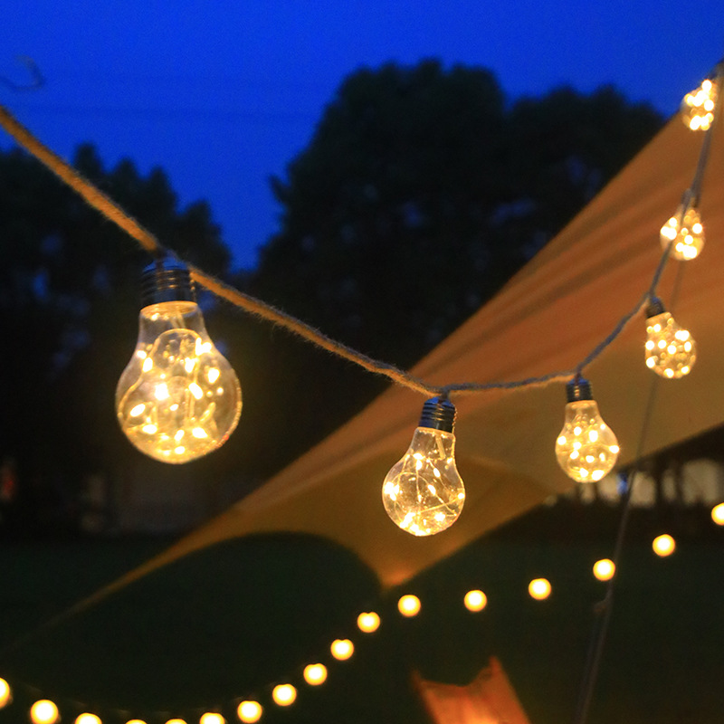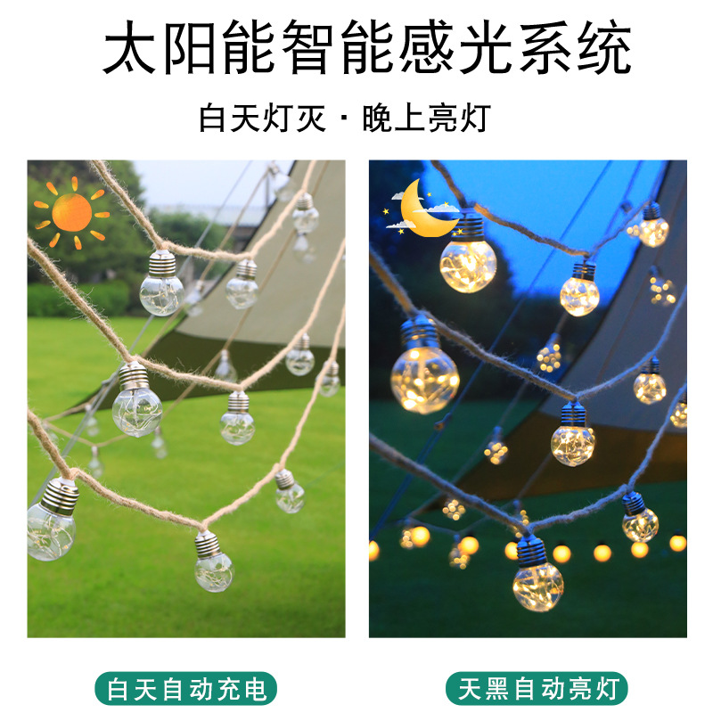 太阳能LED麻绳灯串庭院户外防水装饰灯圣诞节日场景彩灯铜线灯泡