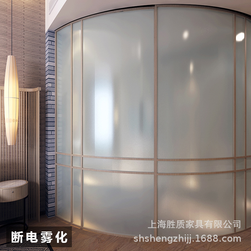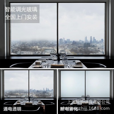 宁波嘉兴自贴膜智能调光玻璃电控雾化膜通电变色玻璃隔断投影门可