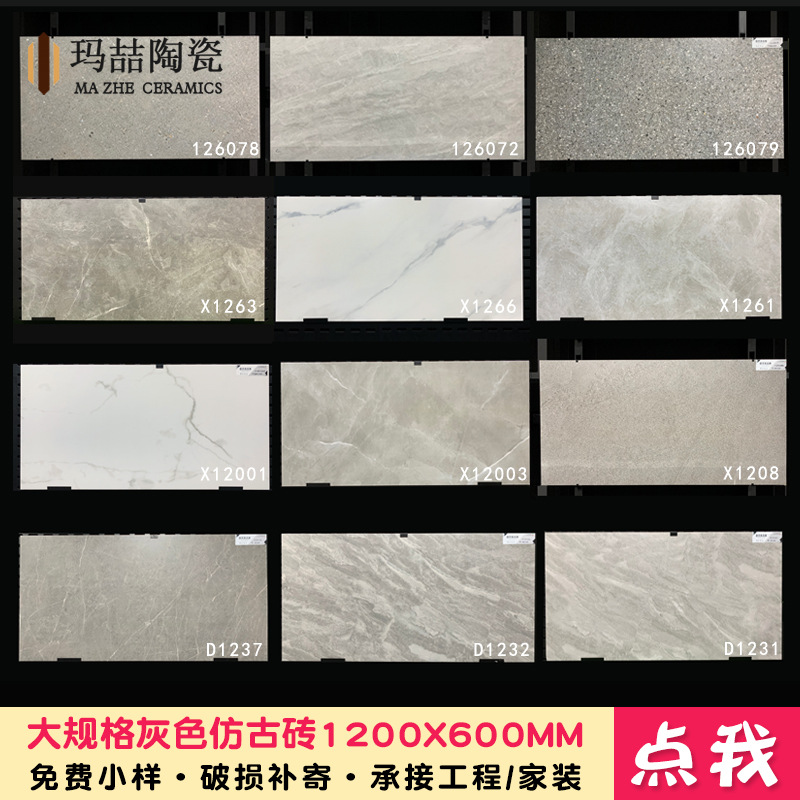 柔光1200x600仿古砖灰色爵士白瓷砖客厅酒店商场干挂墙砖地砖