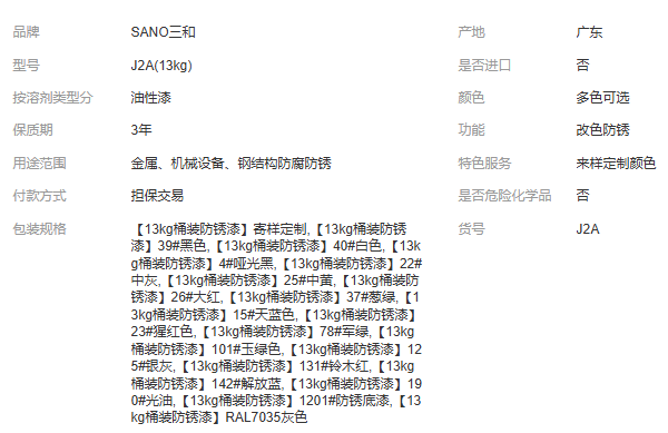三和13kg金属防锈漆丙烯酸调和漆木门栏杆翻新工业改色桶装金属漆