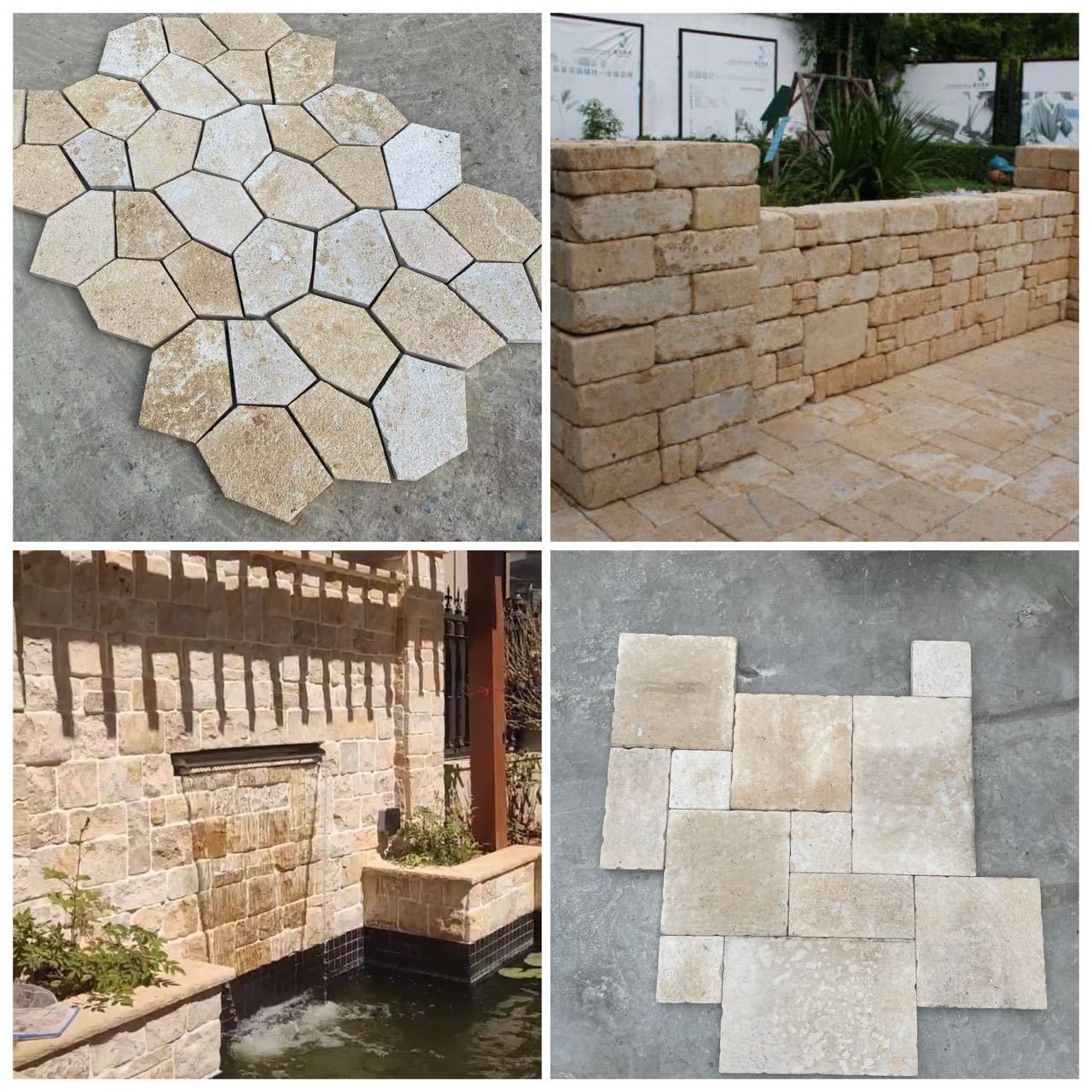 莱姆石凡尔赛拼罗马拼米黄皮革面石材古堡面园林建材文化石石头