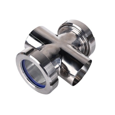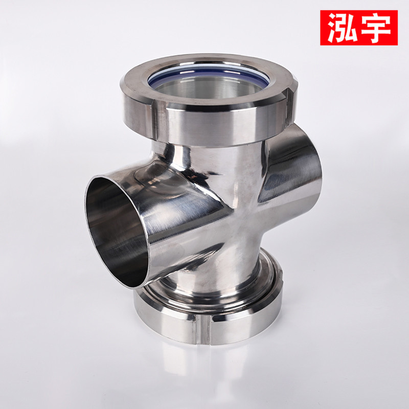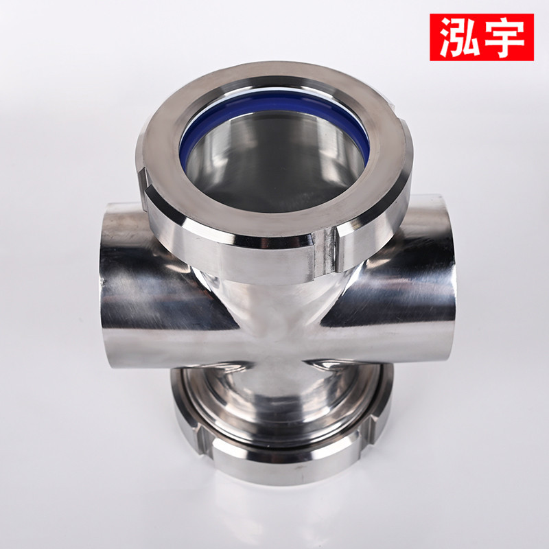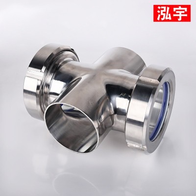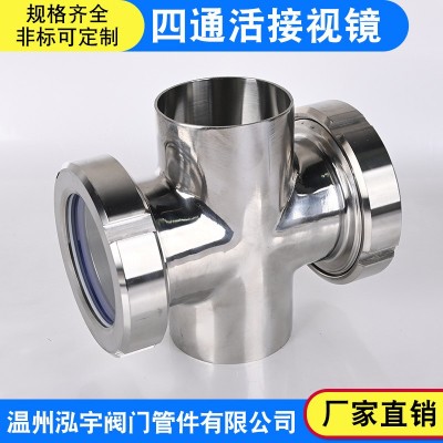 不锈钢四通视镜304不锈钢焊接十字型视盅对焊活接管道视镜