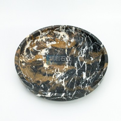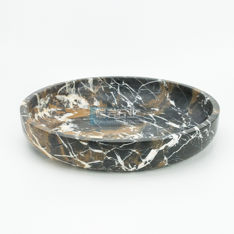 北欧简约风格天然大理石水果盘收纳托盘石材工艺品厨房客厅摆件