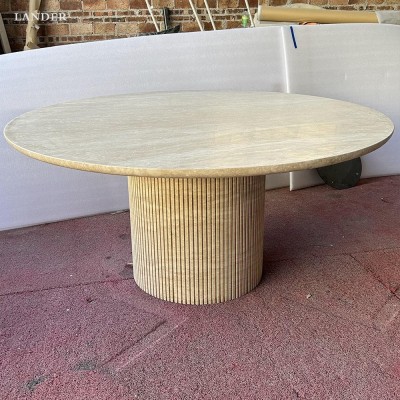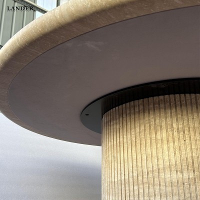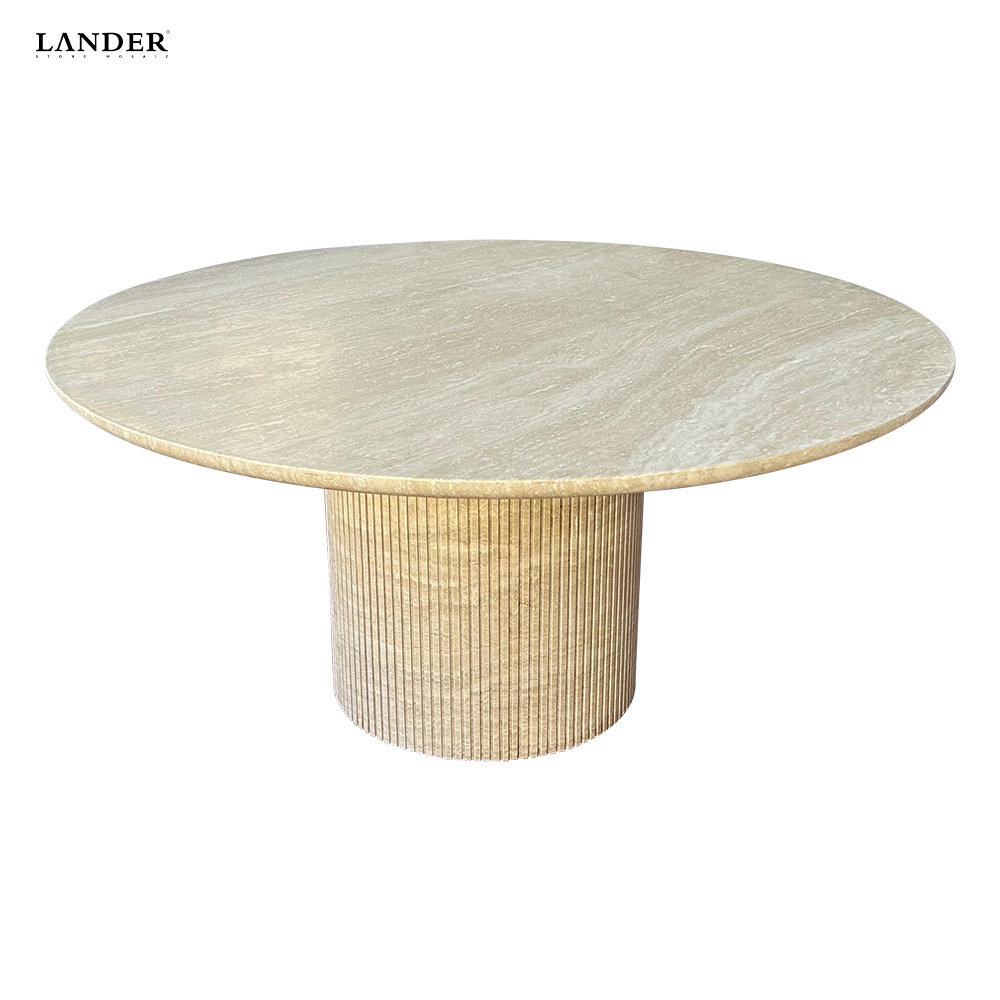 米白洞圆形大理石餐桌餐厅家具意式轻奢风格时尚软装搭配