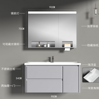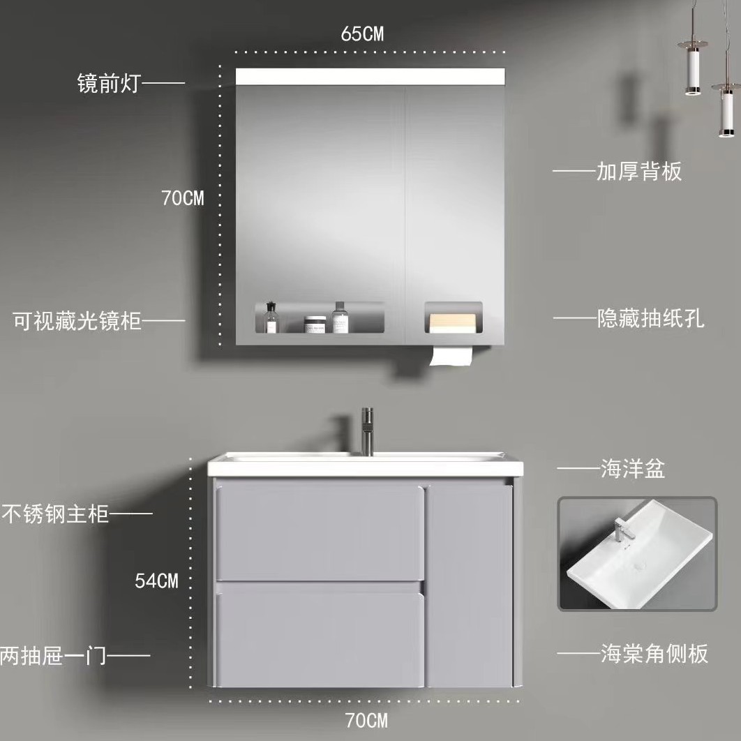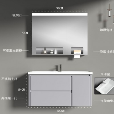 不锈钢主柜双抽带一门独特海棠角搭配超大海洋盆全面镜